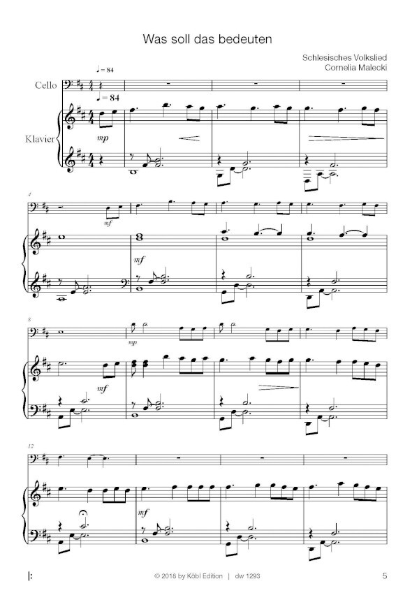 Die romantisch klingenden Stücke mit ihren variierten und erweiterten Rhythmen sind mittelschwer für Cello und Klavier.