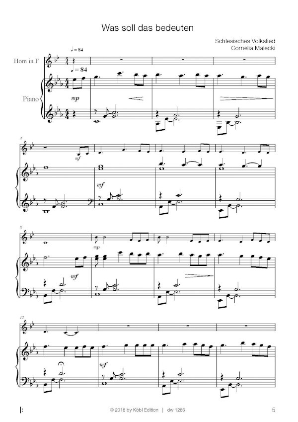 Die romantisch klingenden Stücke mit ihren variierten und erweiterten Rhythmen sind mittelschwer für Horn und Klavier.