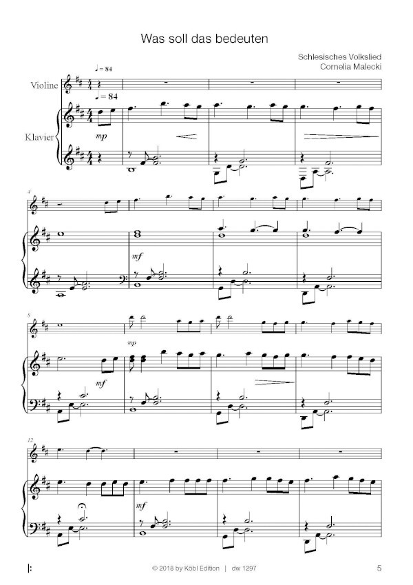Die romantisch klingenden Stücke mit ihren variierten und erweiterten Rhythmen sind mittelschwer für Violine und Klavier.