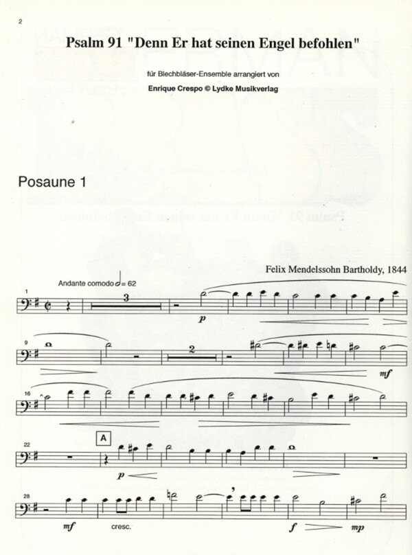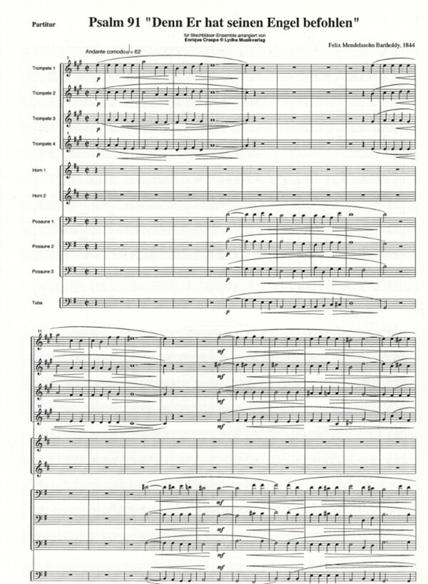 Mendelssohns wunderbar getragenes Chorwerk gibt im Arrangement die Wechselwirkung zwischen Frauen- und Männerchor, in der Form von Abwechslung zwischen Trompeten- und tiefem Blechsatz wieder, während die Hörner die Tiefe des Raumes im Stereoeffekt wiedergeben