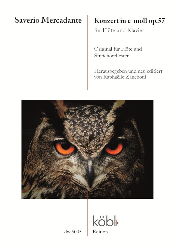 Der italienische Komponist Giuseppe Saverio Raffaele Mercadante (*1795 Altamura, Provinz von Bar, gestorben 1870 in Neapel) war zusammen mit Donizetti, Rossini, Bellini und Pacini einer der Meister der Opernkomposition seiner Zeit. Er studierte Flöte, Violine wahrscheinlich auch Cello und Fagott, sowie Kontrapunkt am Konservatorium von Neapel. Mercadante war in ganz Europa sehr erfolgreich. Aber gegen Ende seines Lebens wurden die von ihm komponierten Opern weniger häufig aufgeführt. Es war die Zeit einer neuen Generation von Opernkomponisten, allen voran des erfolgreichen jungen Verdi. Auch heutzutage bleibt Mercadantes Werk weitgehend unerforscht. Man kennt von ihm aber auch reine Instrumentalstücke wie symphonische Werke und zahlreiche Kammermusikstücke für Blasinstrumente. Mercadante widmete den Bläsern mehrere Solo-Konzerte, darunter zwei Konzerte für Klarinette, ein Hornkonzert und sechs Flötenkonzerte. Heute sind nur die Flötenkonzerte in D-Dur, E-Dur, e-moll und F-Dur erhältlich. Das wohl bekannteste ist das Flötenkonzert in e-moll, Opus 57. Das vermutlich 1814 komponierte Werk war zuerst für Flöte und großes Orchester gesetzt. Mehrmals schrieb Mercadante das Konzert um und komponierte die Fassung für Flöte und Streichorchester erst Jahre später. Wahrscheinlich wurde dieses e-moll Konzert 1818 oder 1819 mit einem Orchester in Neapel aufgeführt. Mercadante hat vermutlich sehr gut Flöte gespielt. Es wird angenommen, dass er die Aufführung dirigiert und selbst den Solopart übernahm. Dieses Meisterwerk war eine Erweiterung des damaligen Flötenrepertoires. Seine Form entspricht zwar ganz traditionell einem Konzert von Vivaldi, aber Mercadante bedient sich der Lyrik und dem Charme aus der Oper. Auch erhöhte er die Anforderungen an die Virtuosität des Solo-Instruments. Dieses Konzert war modern für seine Epoche, nicht nur aus musikgeschichtlicher Sicht, sondern auch auf Grund der noch begrenzten technischen Entwicklung der Flöte zu dieser Zeit. Das Böhm System, wurde erst 1831 von Theobald Böhm entwickelt.
