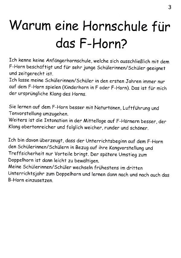 Manfred Messner, der Autor dieser Schule findet, wie viele andere Lehrer und Hornprofessoren übrigens auch, das Erlernen des Hornspiels auf dem reinen F-Horn viel effektiver als auf dem B-Horn.