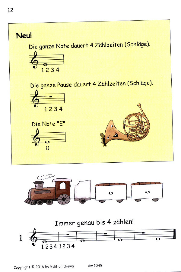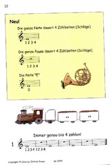 Damit können die SchülerInnen von Anfang die Töne hören und mitspielen. Die Pausen sind babei durch Klicks unterlegt.