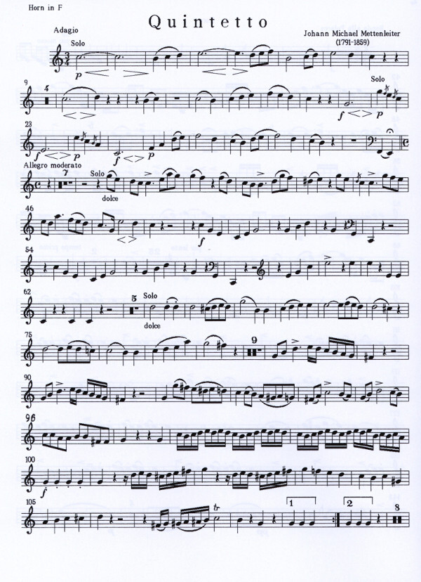 für Flöte, Horn in F, Violine, Viola + Bass