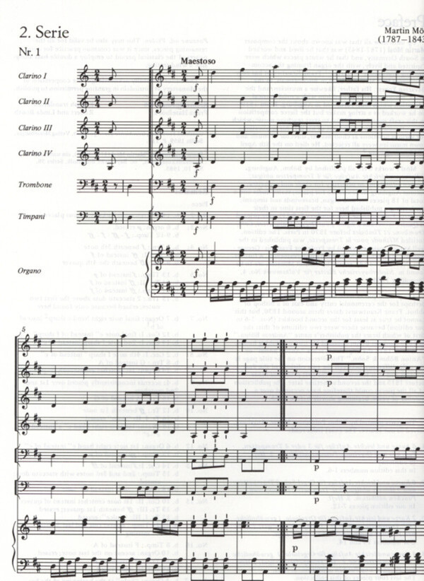 für 4 (3) Trompeten, 2 Hörner, Posaune, Pauken + Orgel