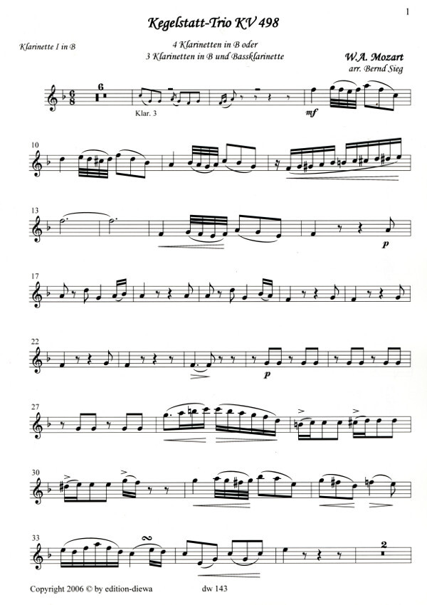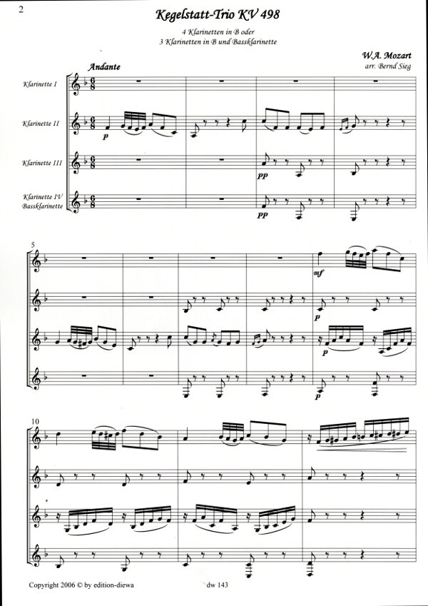 für 4 Klarinetten in B oder 3 Klarinetten in B + Bassklarinette