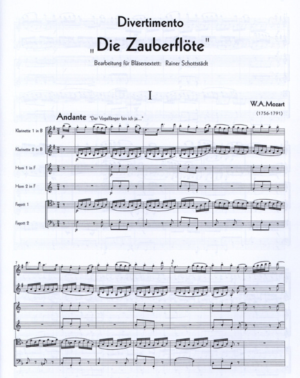 für 2 Klarinetten, 2 Hörner + 2 Fagotte