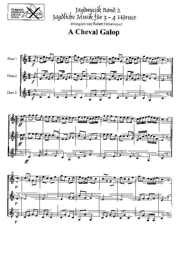 für 3 - 4 Hörner (Trompe de Chasse, Parforcehörner)