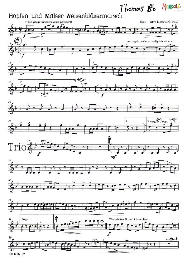 aus der Reihe Mnozil Brass für 2 Trompeten in B/C Posaune in B/C/Es/F Posaune in B/C + Tuba in B/C/Es