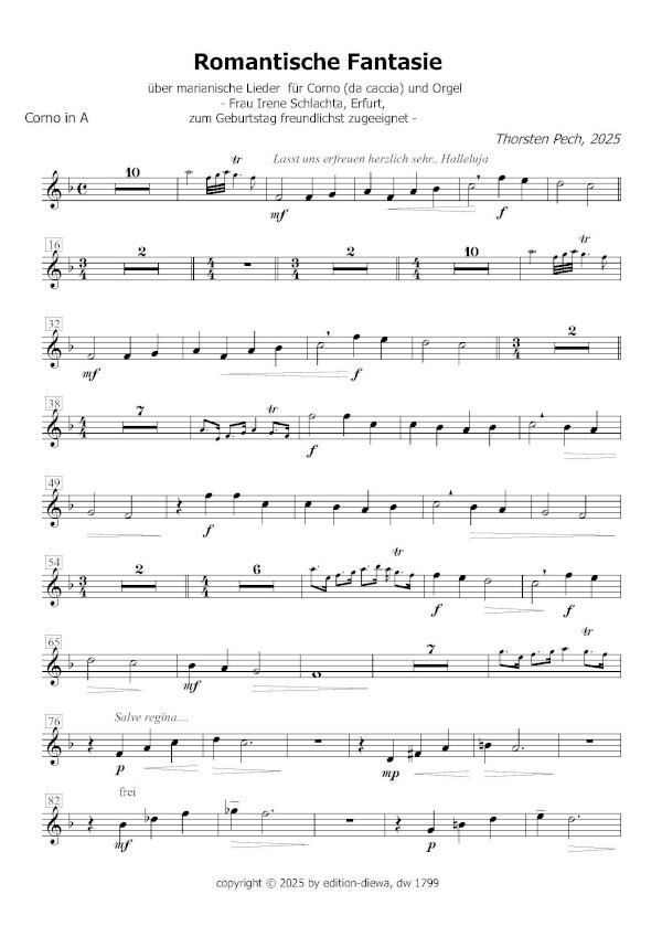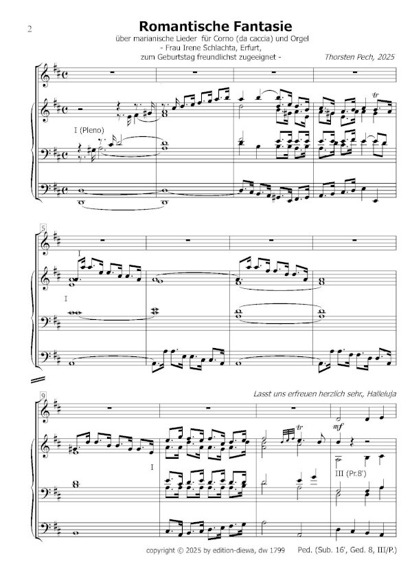 Das Werk Romantische Fantasie über marianische Lieder für Corno da caccia und Orgel, von Thorsten Pech (*1960) komponiert, und am 3. Juli 2025 in