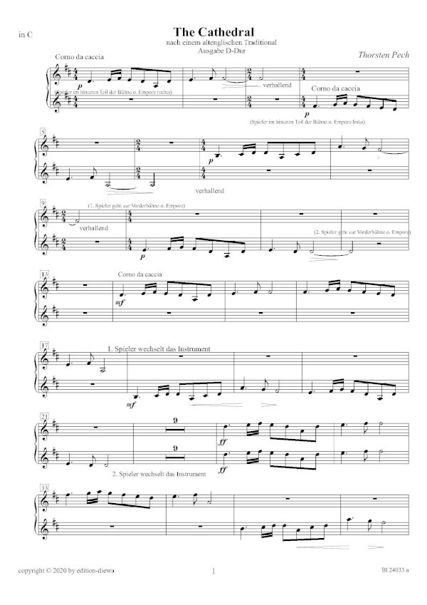 für 2 Trompeten oder 2 Corni da caccia, Pauken ad lib. und Orgel