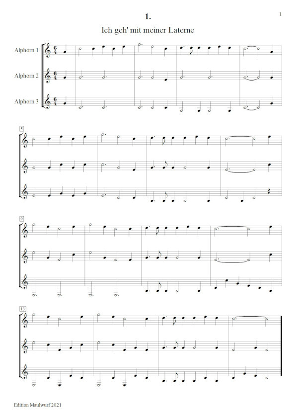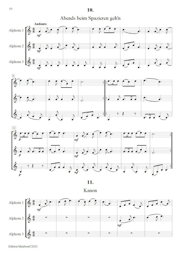 für Horn in F ein bis dreistimmig mit Klavierbegleitung (ad lib.)