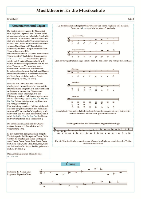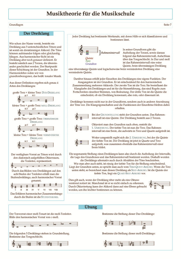 "Dieses Lehrbuch ist für den Gebrauch im Rahmen des Theorieunterrichtes an einer Musikschule ab einem Alter von etwa 14 Jahren gedacht. Es kann jedoch auch zum Selbststudium in anderen Altersstufen verwendet werden. Ein wenig Grundwissen im Notenlesen und in Gehörbildung sollte dabei vorhanden sein. Die einzelnen Themengebiete bauen nicht komplett aufeinander auf und können durchaus einzeln behandelt werden~ es ist jedoch trotzdem sinnvoll, der Chronologie dieses Lehrbuches zu folgen. Ziel ist es, die musiktheoretischen Grundlagen soweit zu legen, dass ein fortgeschrittenes Niveau im Sinne der "Studienvorbereitenden Ausbildung" erreicht wird.