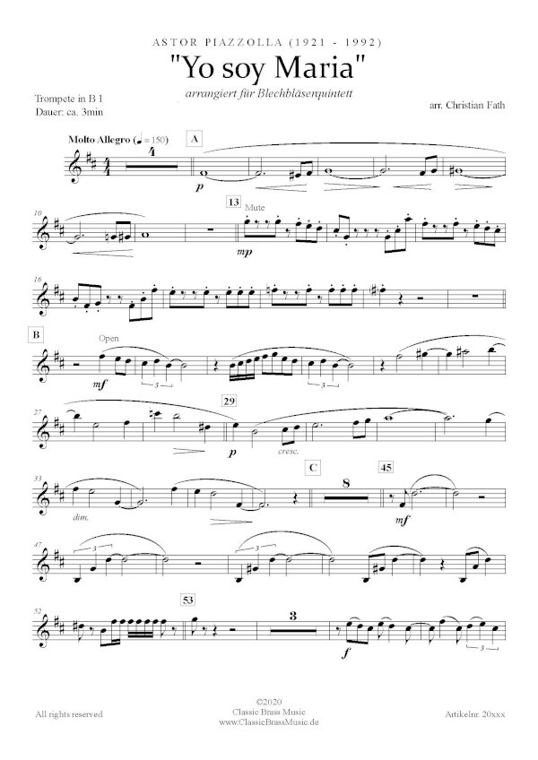 2 Trompeten in B, Horn in F, Posaune, Tuba
