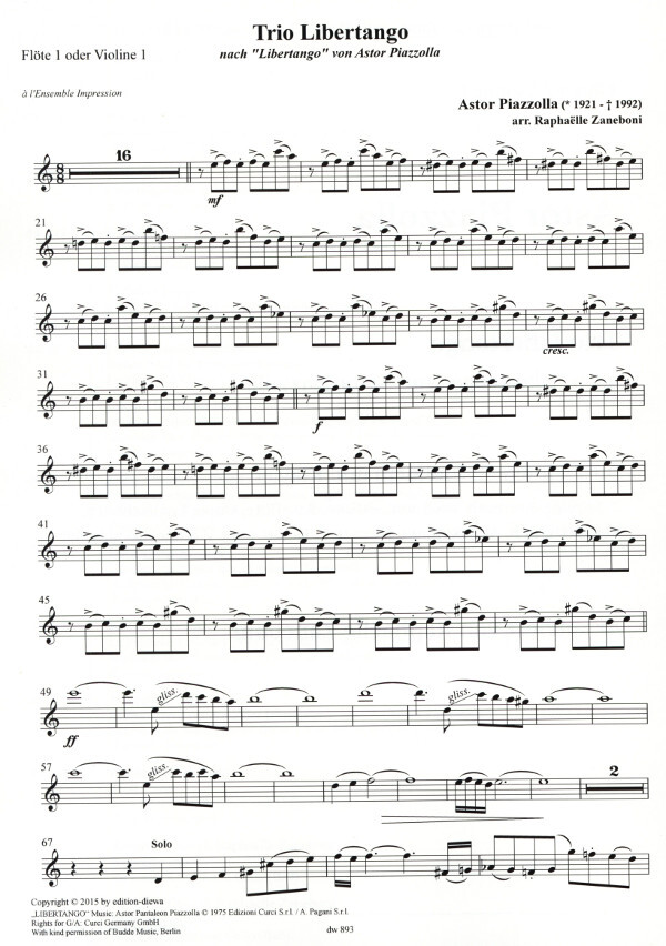 2. Stimme alternativ mit folgenden Instrumenten möglich: Horn in F, Altflöte, Bassflöte, Oboe, Englischhorn, Klarinette in B, Altsaxophon. Fagott, Violoncello