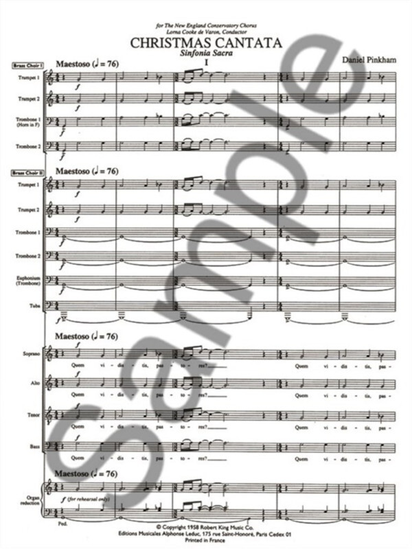 Christmas Cantata (Sinfonia Sacra), the most famous piece of Daniel Pinkham, composed in 1957, is a church composition for chorus, double brass and organ. Written in Latin. Accessible to good high-school and college singers, theopening statement is sung by the whole SATB chorus, followed by the Allegro section, which is rhythmically quite complicated. The middle section is sung by sopranos and altos while the Rondo, which is part of the final part, issung by the whole SATB, its verses being interpreted by the different groups. Daniel Pinkham (1923-2006) is an American composer, organist and harpsichordist. Most of his compositions were related to church music and his bestknown works are the Christmas, Advent and wedding cantatas.