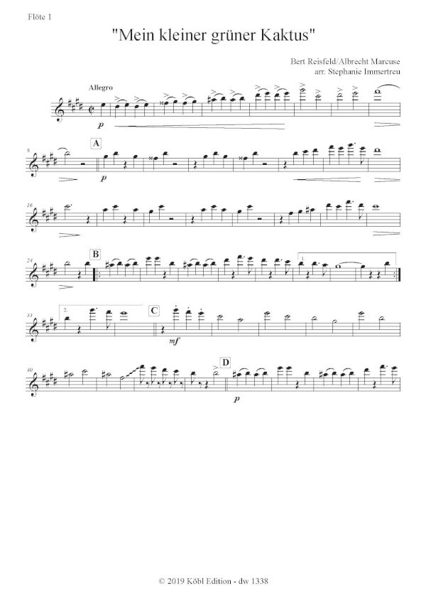 6 Flöten, Altflöte, Bassflöte & Kontrabaß ad libitum