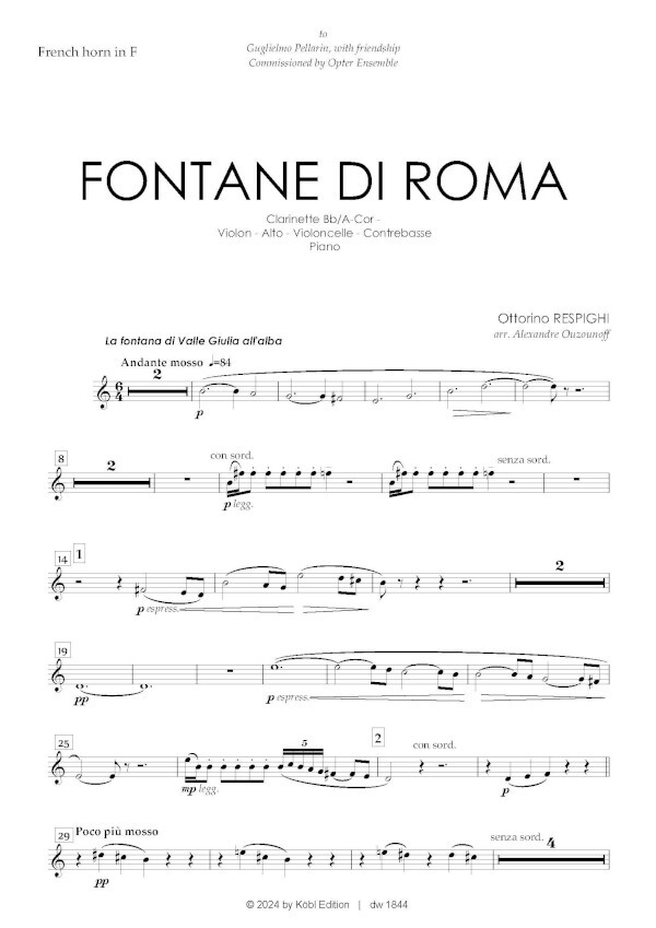 für Clarinet, Horn, Violin, Viola, Cello, Double Bass (ad lib.), Piano