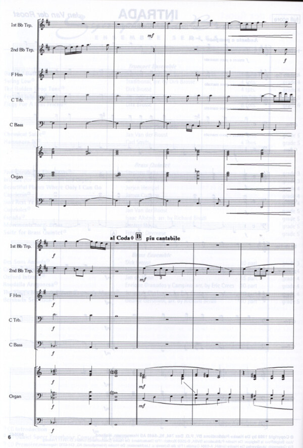 für 2 Trompeten, Horn in F/Es, Posaune (Tenorhorn), Tuba + Orgel