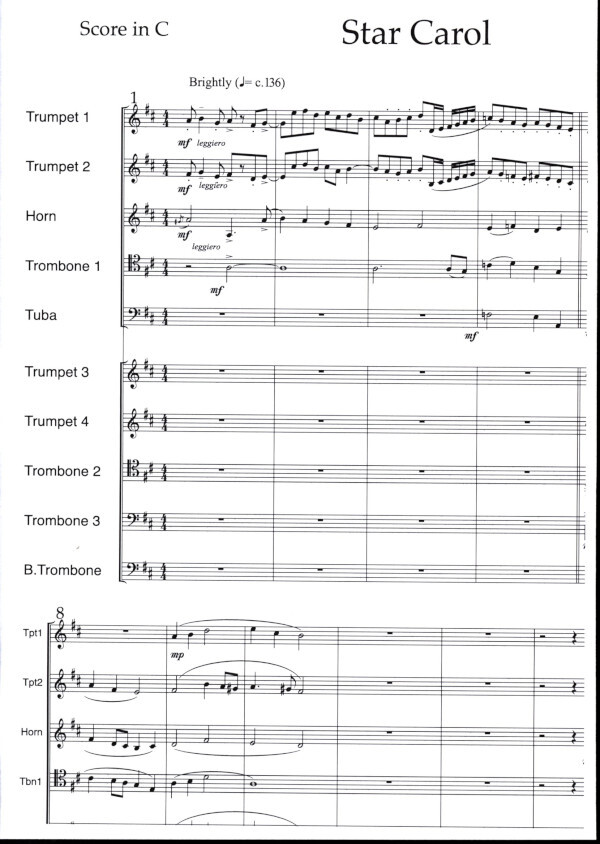 b) tentet with unison voices singing the melody and words as published by OUP c) 5tet (tpt 1, tpt 2, hn, trb1, tuba) and mixed voices, SATB as OUP version d) tentet with mixed voices (tpt3/4, trb 2/3/4 doubling voices as required.