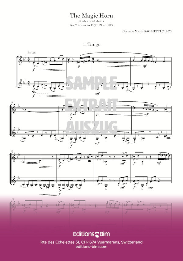 Eine spannende Mischung von technischer Virtuosität und stilistischer Vielfalt in dieser Sammlung von 9 herausfordernden und unterhaltsamen Duetten. Enthüllen Sie die Magie des Horns mit seinem erstaunlichen Tonumfang und der Vielfalt an Klangfarben und Nuancen.