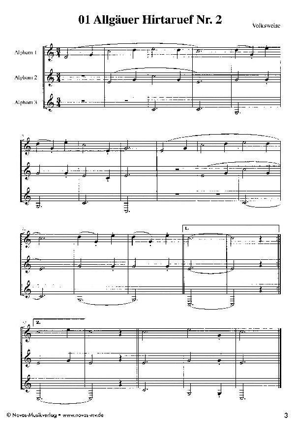 Volksweise: Allgäuer Hirtenruf Nr.2 für 3 Alphörner