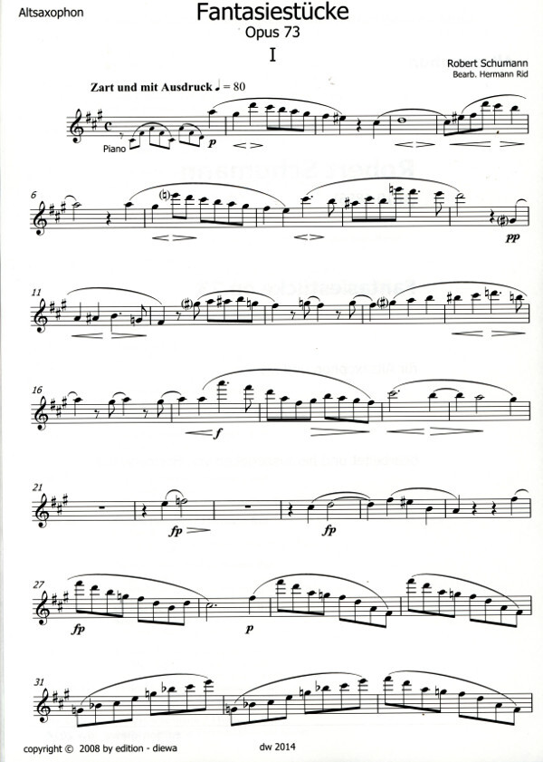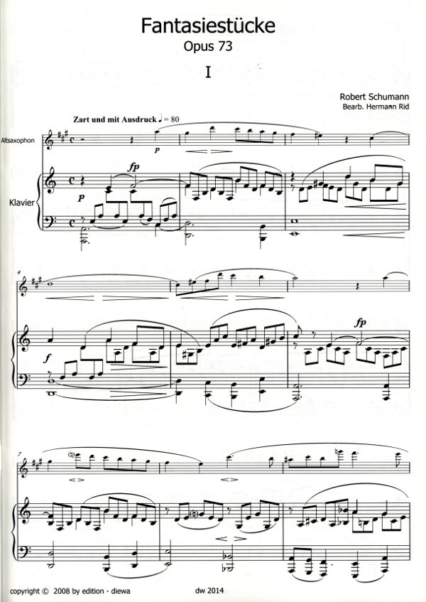die bekannten 3 Phantasietücke von Robert Schumann in einer gelungenen Bearbeitung, sehr gut geeignet für Wettbewerbe wie "Jugend musiziert", Vorspiele und Konzerte