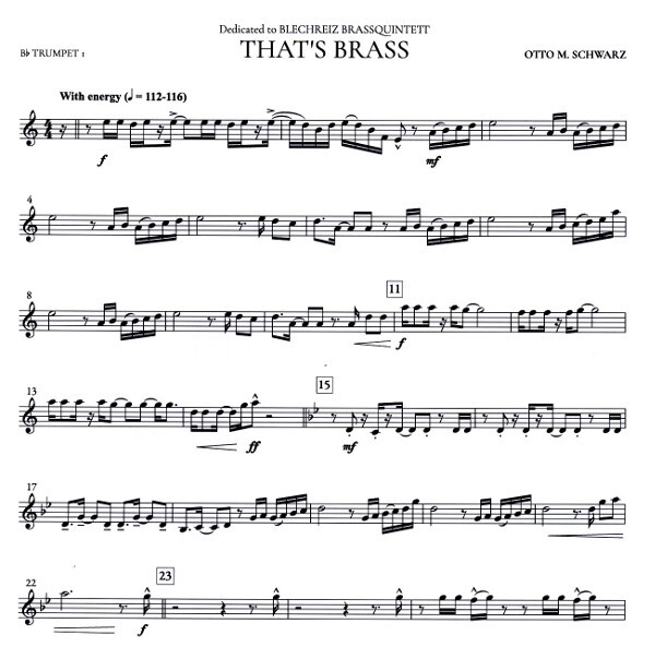 Dieses Werk ist dem Brassquintett Blechreiz gewidmet, zu deren 10-jährigem Jubiläum. In der sehr anspruchsvollen Komposition ist jeder der Musiker in höchstem Maß gefordert. Rhythmisch exponierte Stellen, die im durchgehenden Sechzehntel-Groove ineinandergreifen, wechseln sich mit Solopassagen und einem eingängigen Chorus ab. Inmitten der Komposition erklingt plötzlich ein Walzer das Ensemble wird jedoch durch den Unmut des Tubisten zur Raison gebracht und findet alsbald in den ursprünglichen Stil zurück. Anspruchsvolle, ironische und witzige Passagen mit funkigem Groove sind die Ingredienzen dieses neuen Werkes von Otto M. Schwarz für Brassquintett.