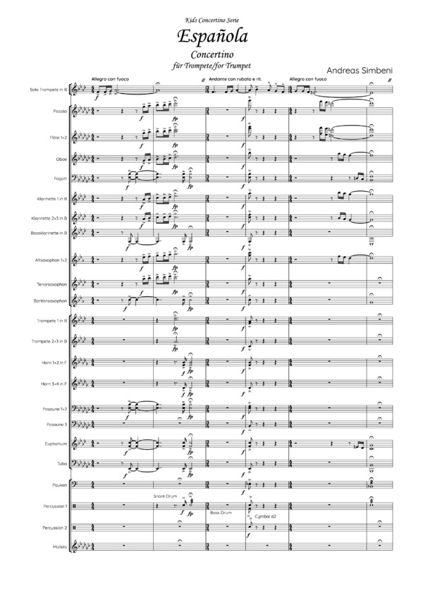 Ein junger Solist im Rampenlicht: Kids Concertino Serie Española - Concertino für Trompete und Klavier oder Blasorchester In der magischen Welt der Musik gibt es nichts Inspirierenderes als den Klang eines jungen, talentierten Solisten, der mit einem Musikverein auftritt. Die Kids Concertino Serie bietet jüngeren Künstlern die einmalige Gelegenheit, ihre Fähigkeiten vor einem begeisterten Publikum zu präsentieren und gleichzeitig die Schönheit ihres Instruments in den Vordergrund zu rücken. In diesem Konzert unternimmt der Solist eine Reise ins feurige Spanien. Lasst uns die Talente der nächsten Generation feiern und ihnen die Möglichkeit geben, die Bühnen dieser Welt zu erobern! Die Zukunft der Musik liegt in ihren Händen, und jeder Auftritt ist ein Schritt in eine strahlende musikalische Zukunft.