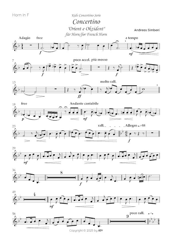 .Ein junger Solist im Rampenlicht: Die Kids Concertino Serie Orient e Okzdent - Concertino für Horn und Klavier oder Blasorchester In der magischen Welt der Musik gibt es nichts Inspirierenderes als den Klang eines jungen, talentierten Solisten, der mit einem Musikverein auftritt. Die Kids Concertino Serie bietet jüngeren Künstlern die einmalige Gelegenheit, ihre Fähigkeiten vor einem begeisterten Publikum zu präsentieren und gleichzeitig die Schönheit ihres Instruments in den Vordergrund zu rücken. In diesem Konzert unternimmt der Solist eine Reise vom Morgenland ins Abendland.