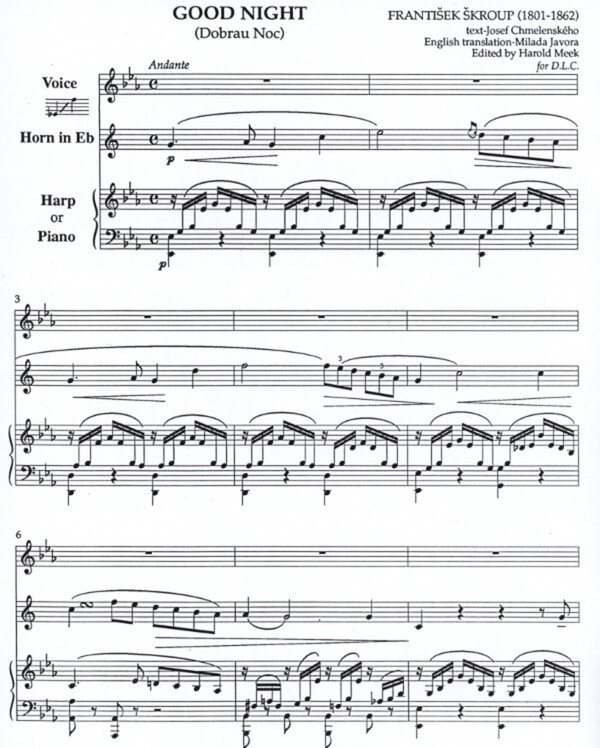für mittlere Stimme, Horn + Klavier (Harfe)