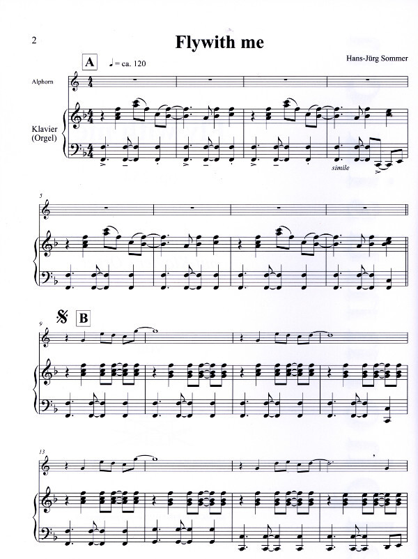 "Fly with me" (op. 254) von H.-J. Sommer für Alphorn solo und Klavier/Orgel ist eine Pop Ballade