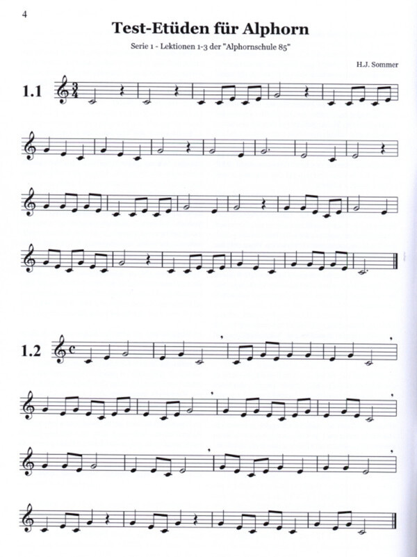 als Ergänzung zur Alphornschule AH 2123 aufgebaut nach den Lektionen der Schule ansteigender Schwierigkeitsgrad 2 x 7 Serien à 6 Etüden