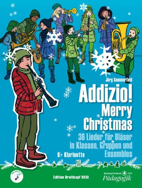36 Weihnachtslieder für Bläser in Klassen, Gruppen und Ensembles [Bl] Weihnachtslieder sind für viele Kinder der erste musikalische Ernstfall, bei dem sie mit großem Engagement in unterschiedlichen Zusammenhängen auftreten. Addizio! Merry Christmas bietet dafür eine attraktive Mischung aus traditionellen Liedern, amerikanischen und amerikanisierten Titeln in Jazz- und Popstilistik bis zu gängigem Schulrepertoire.