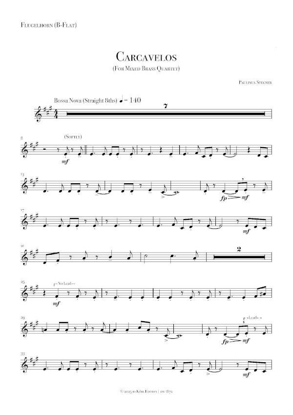 Flügelhorn (oder Trompete) in B, Horn in F (oder 2. Flügelhorn in B), Posaune und Bassposaune (oder Tuba)