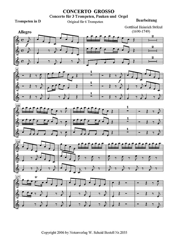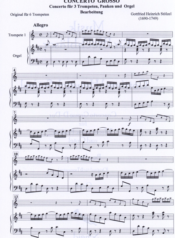 Ausgabe in D-Dur (Tr in B/C/D) für 3 Trompeten, Pauken und Orgel
