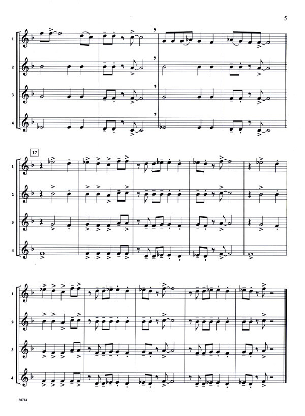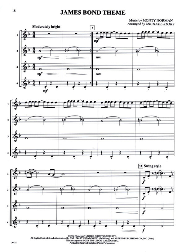 Alfred's Pop Quartets for All series is a versatile, educational, and fun series intended for like or mixed instruments to perform in any size group or combination of instruments. All books are in score format with each line increasing in difficulty from Grade 1 to Grade 3-4. Alternate passages and notation are included to suit instrumental ranges. With no page turns required, the songs and measures are consistent which makes finding rehearsal points quick and convenient. Perfect for concerts with family and friends, recitals, auditions, and festivals. Available for brass, woodwinds, strings, and percussion.