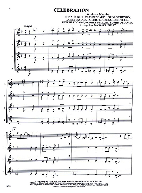 Alfred's Pop Quartets for All series is a versatile, educational, and fun series intended for like or mixed instruments to perform in any size group or combination of instruments. All books are in score format with each line increasing in difficulty from Grade 1 to Grade 3-4. Alternate passages and notation are included to suit instrumental ranges. With no page turns required, the songs and measures are consistent which makes finding rehearsal points quick and convenient. Perfect for concerts with family and friends, recitals, auditions, and festivals. Available for brass, woodwinds, strings, and percussion.