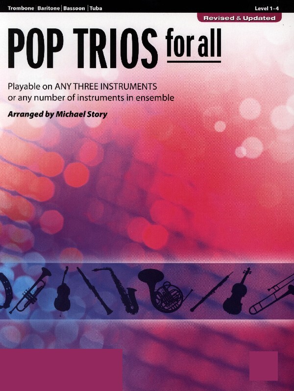Pop Trios for All is a versatile, educational, and fun series intended for like or mixed instruments to perform in any size group or combination of instruments. All books are in score format with each line increasing in difficulty from Grade 1 to Grade 3-4. Alternate passages and notation are included to suit instrumental ranges. With no page turns required, the songs and measures are consistent which makes finding rehearsal points quick and convenient. Perfect for concerts with family and friends, recitals, auditions, and festivals. Available for brass, woodwinds, strings, and percussion.