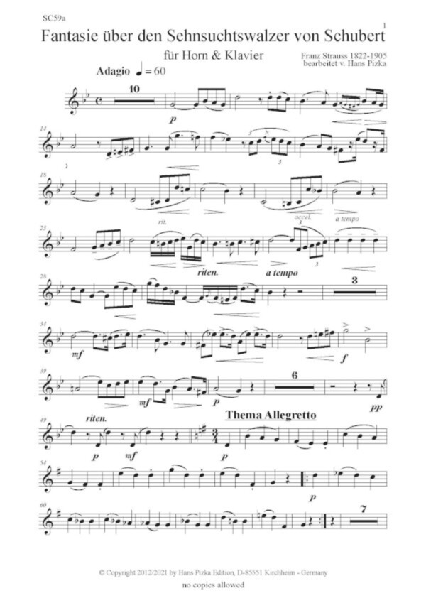 Musik arrangiert von: Hans PizkaVerlag: Pizka VerlagStil: KlassikAusgabe: NotenArt-Nr.: K22596 / SC59A Level: (4)