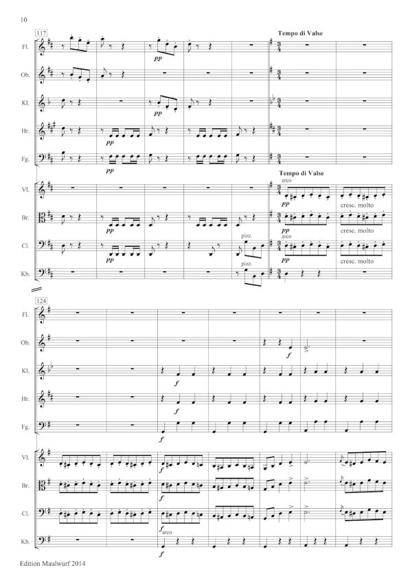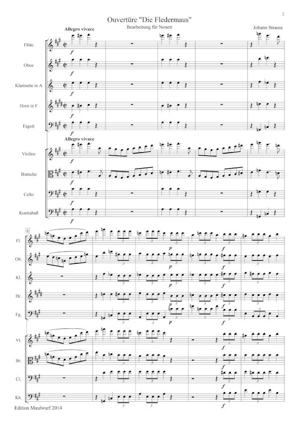 Flöte, Oboe, Klarinette, Horn, Fagott, Violine, Viola, Violoncello, Kontrabass
