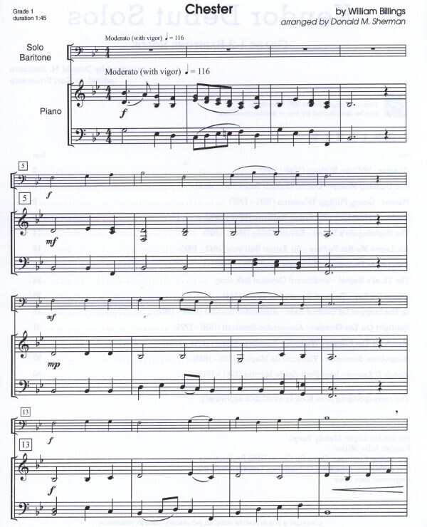 Designed for a first contest or recital performance, this grade 1-2 collections contain 14 pieces that have been carefully edited by baritone specialist Donald Sherman, and edited by Carl Strommen. The free downloadable piano accompaniment MP3s will be an invaluable tool for students. Piano accompaniment book sold separately