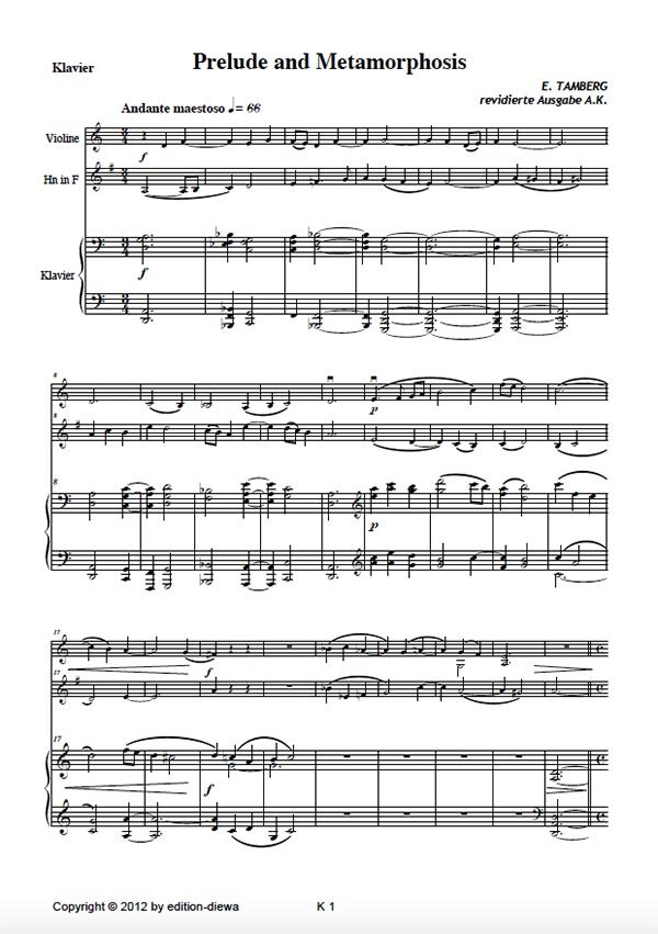für Horn in F, Violine + Klavier