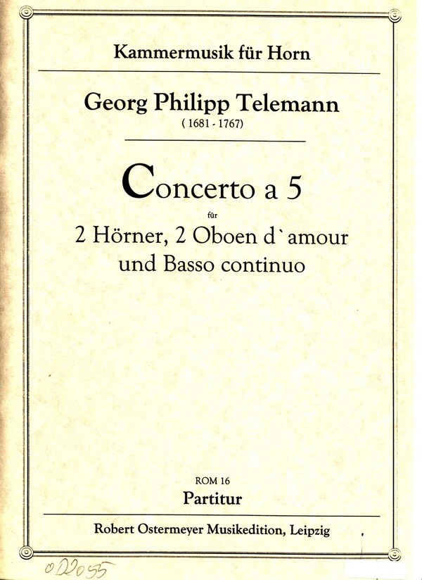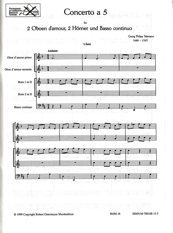 für 2 Hörner, 2 Oboen d'amour + B.c.