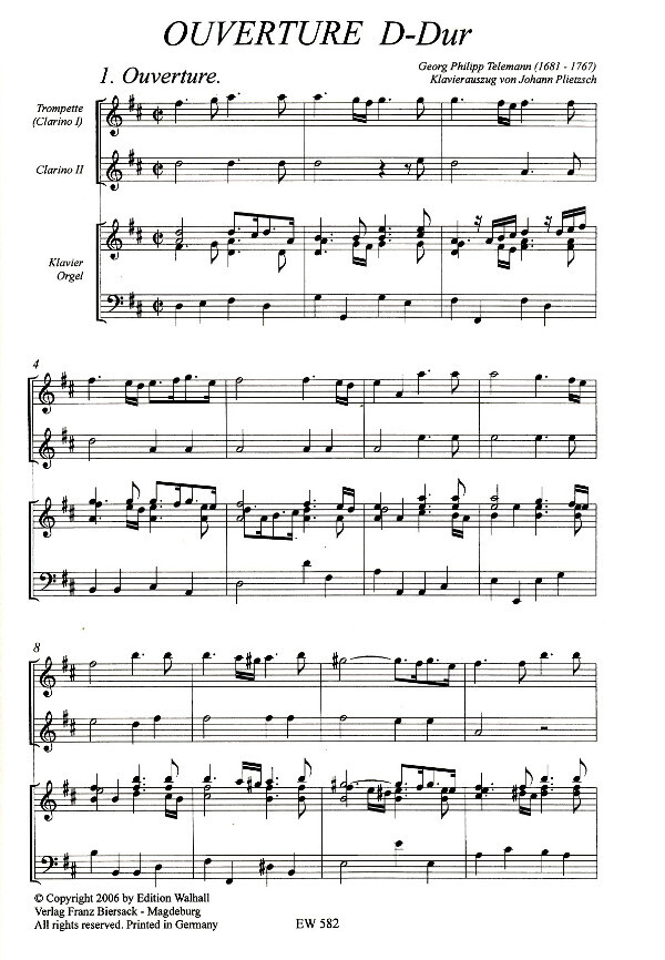(1681-1767, TWV55:D17, Trompeten in D, auch mit Klavier spielbar) für 2 Trompeten + Orgel