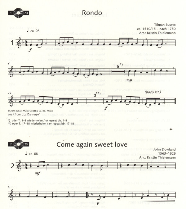 Der vorliegende Band enthält 26 leichte Stücke für Trompete und Klavier aus Barock, Klassik und Romantik. Die kurzen Stücke sind für Trompetenschülerinnen und -schüler ab dem 2. bis 3. Unterrichtsjahr gut geeignet. Die Klavierbegleitungen sind so gestaltet, dass sie auch von Schülerinnen und Schülern ausführbar sind und somit das gemeinschaftliche Musizieren fördern. Die Stücke eignen sich damit bestens für Vorspiele in Schulen und Musikschulen sowie für Auftritte aller Art. Bei der Einspielung der CD wurde bewusst gemäßigte Tempi gewählt, um den jungen Musikern das Mitspielen zum Klavierpart zu erleichtern.