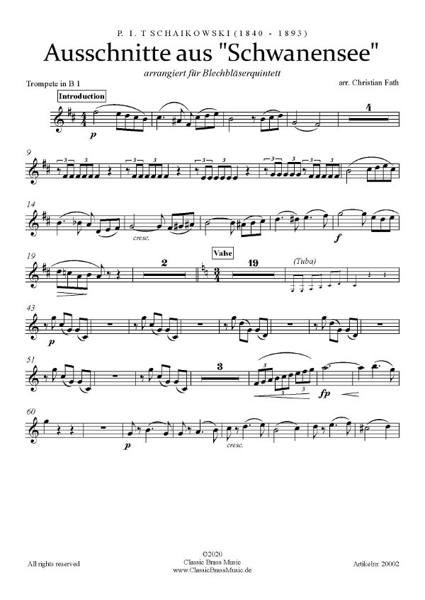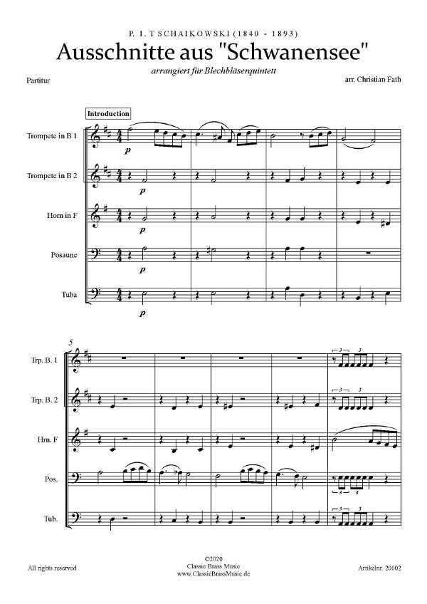 Das bekannte Ballett "Schwanensee" begeistert seit vielen Jahrzehnten Menschen auf der ganzen Welt. Die Melodien sind gleichermaßen einfach wie genial und bleiben auch lange nach dem Konzert in den Köpfen des Hörers. Diese Bearbeitung hätte wohl endlos werden können. Der Arrangeur beschränkte sich aber ausschließlich auf die aller-bekanntesten Abschnitte des Balletts und hofft so, den Ansprüchen an dieses Werk gerecht zu werden.