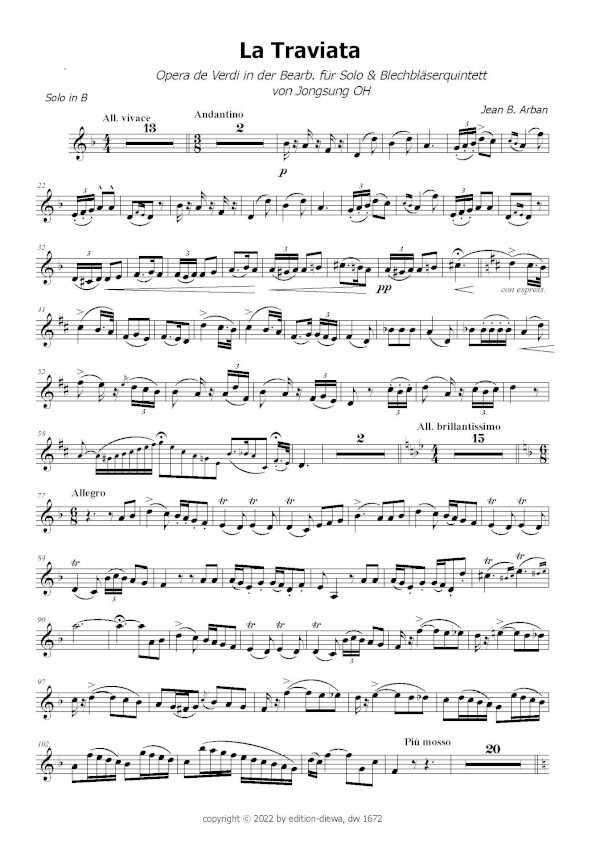 für Solotrompete / Kornett in B und Blechbläserquintett