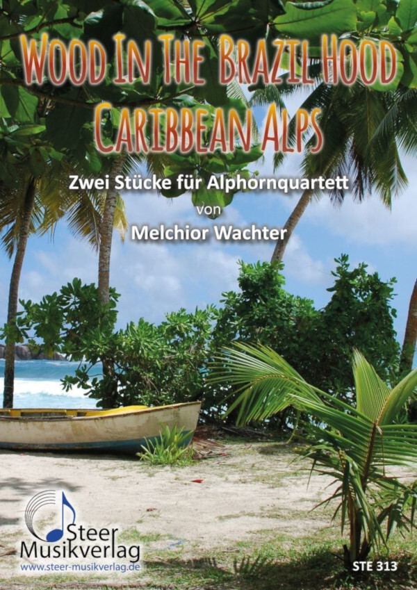 Zwei moderne Stücke für Alphornquartett von Melchior Wachter Melchior Wachter ist ein Vorarlberger Komponist mit einem Gespür für innovative Klangwelten. In seinen Stücken Wood in the Brazil Hood und Caribbean Alps bringt er eine faszinierende Verbindung von traditionellem Alphornklang und karibischen Rhythmen zum Ausdruck. Beide Kompositionen für Alphornquartett überschreiten die Grenzen traditioneller Volksmusik und schaffen eine klangliche Fusion, die das Alpeninstrument in einem völlig neuen Licht erscheinen lässt.