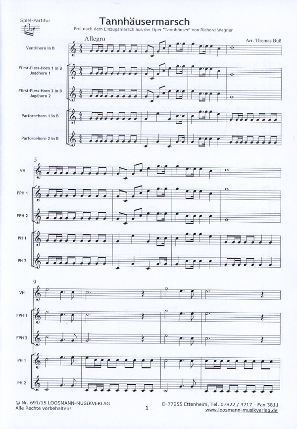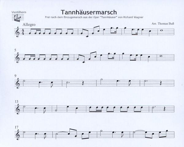 Die Fanfare aus dem Einzug der Gäste aus der Oper "Tannhäuser" ist eine festliche Ouvertüre für Konzerte und besondere Veranstaltungen. Die Ventilhornstimme wird nur für den Ton D benötigt.